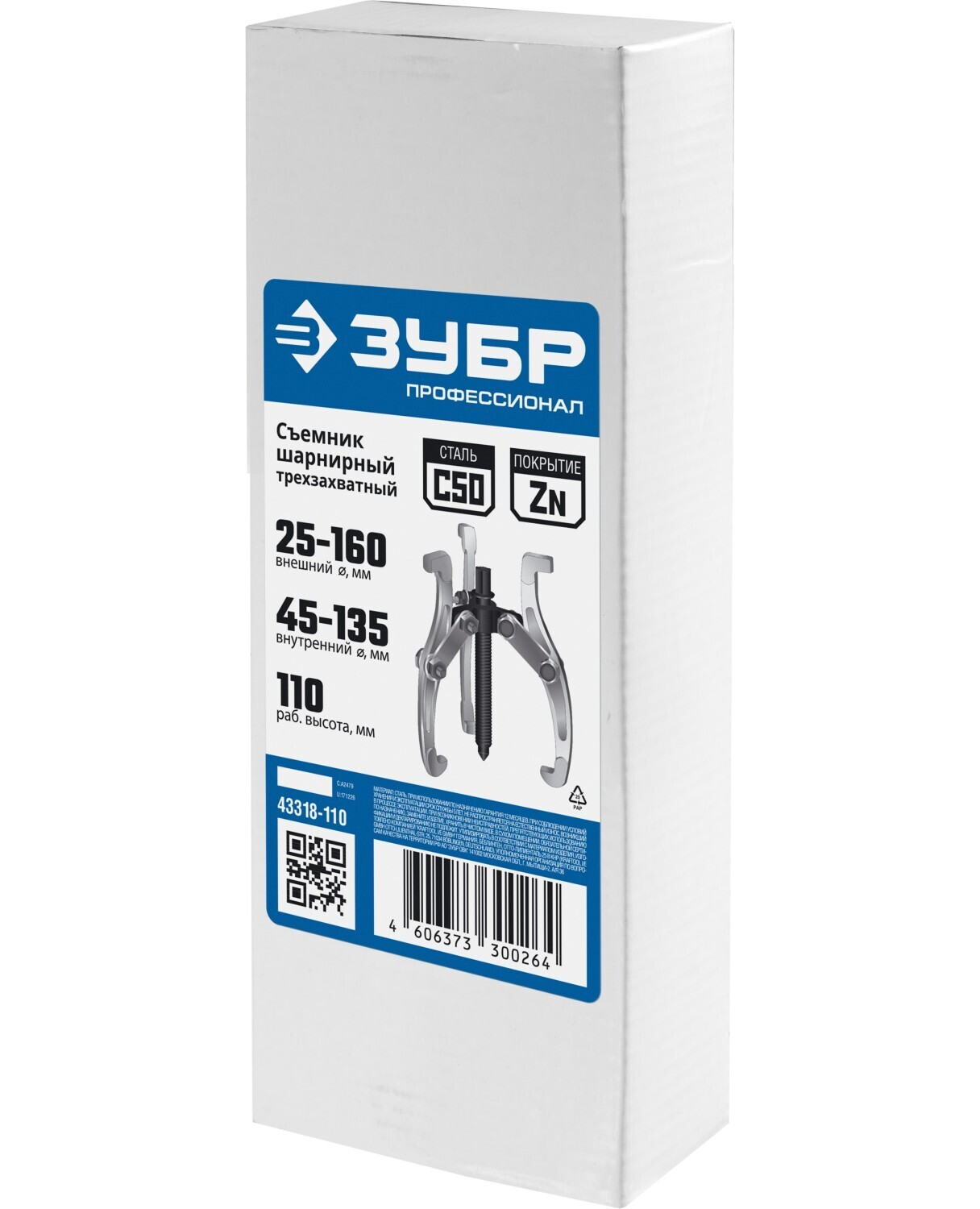 | Доп. наименование Водопад | Съемник шарнирный Зубр Профессионал 43318-110 3-захватный, 110 мм |