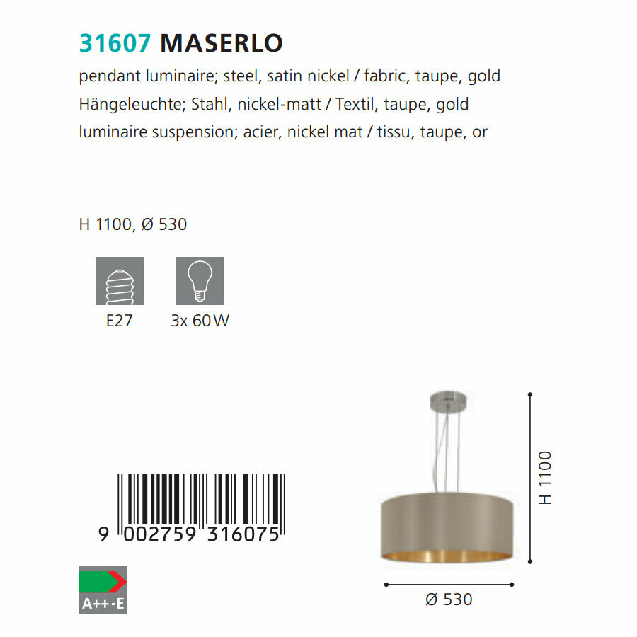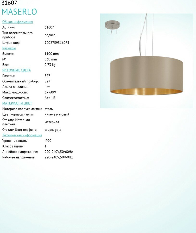 Сервис сравнения цен СкидкаГИД предлагает сравнить цены на товар «Подвес Eglo Maserlo 31607»