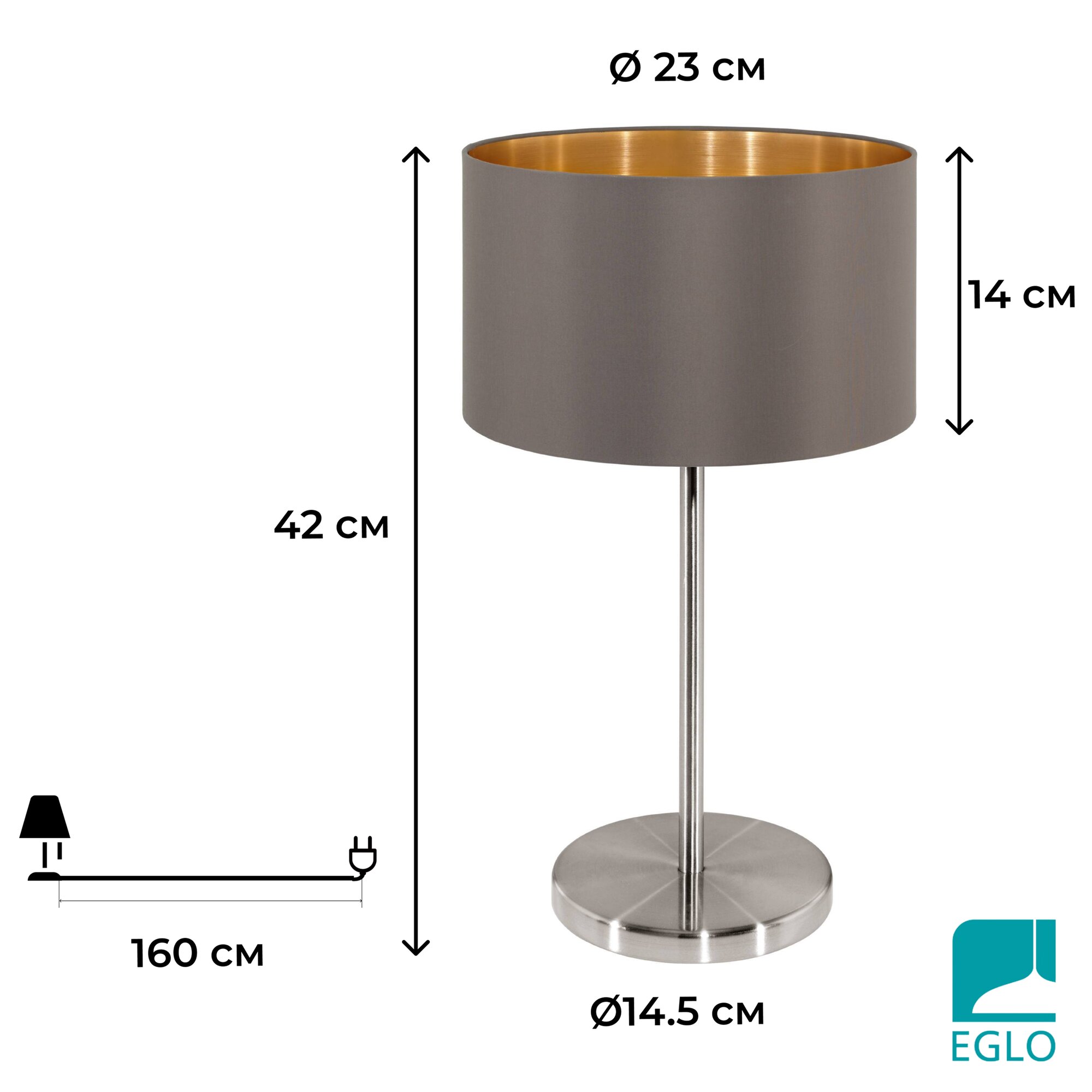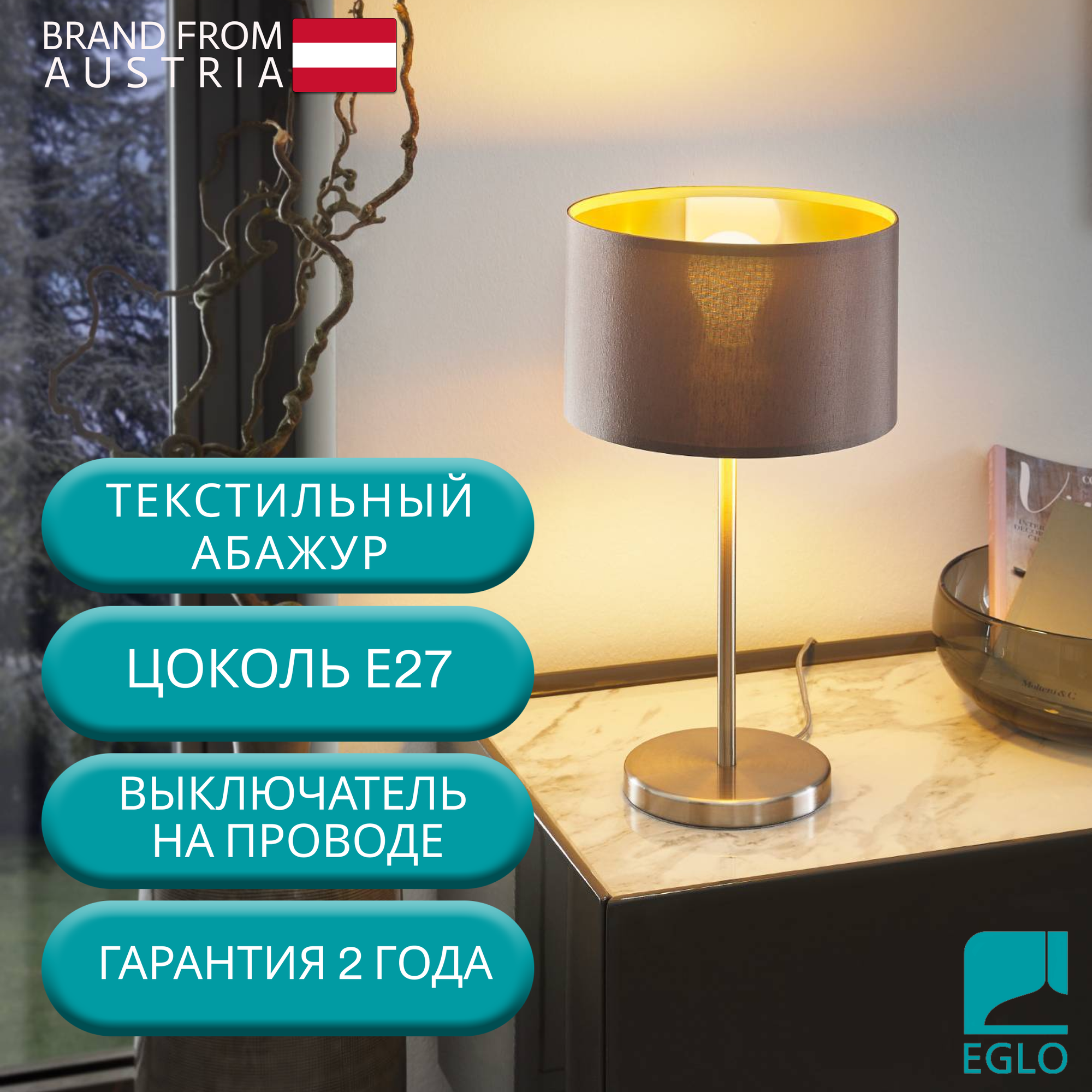 Настольная лампа с выключателем - продукт известной компании Eglo (Австрия). Имеет максимальную мощность 60 Вт, освещает площадь до 3 кв. м. Отлично подойдет для таких мест, как спальня, гостиная. Впишется в интерьеры следующих стилей: Модерн.