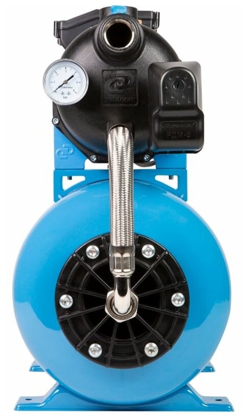 Насосы-автоматы, производимые компанией Джилекс, различаются по способу управления выпускаются насосы-автоматы с контролем потока и насосы-автоматы с автоматическим управлением по давлению. Данная модель, которая реализована на основе центробежного поверхностного насоса серии Джамбо управляется по давлению. Управляющим устройством в данном случае является реле давления РДМ-5. Реле давления включает насос, когда давление в системе опускается до нижней границы настроек реле, и выключает насос, когда давление достигает верхней границы заданной в настройках величины. Гидроаккумулятор накапливает (аккумулирует) воду под давлением и сглаживает гидроудары. При открытии потребителем крана вода поступает под давлением из аккумулятора. Такая система это идеально решение для загородных домов, вода для которых берется из скважины.