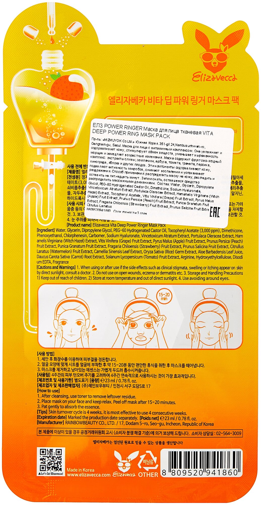 Маска Elizavecca с витаминным комплексом Deep Power Ringer Mask Pack Vita 23 мл (941860)