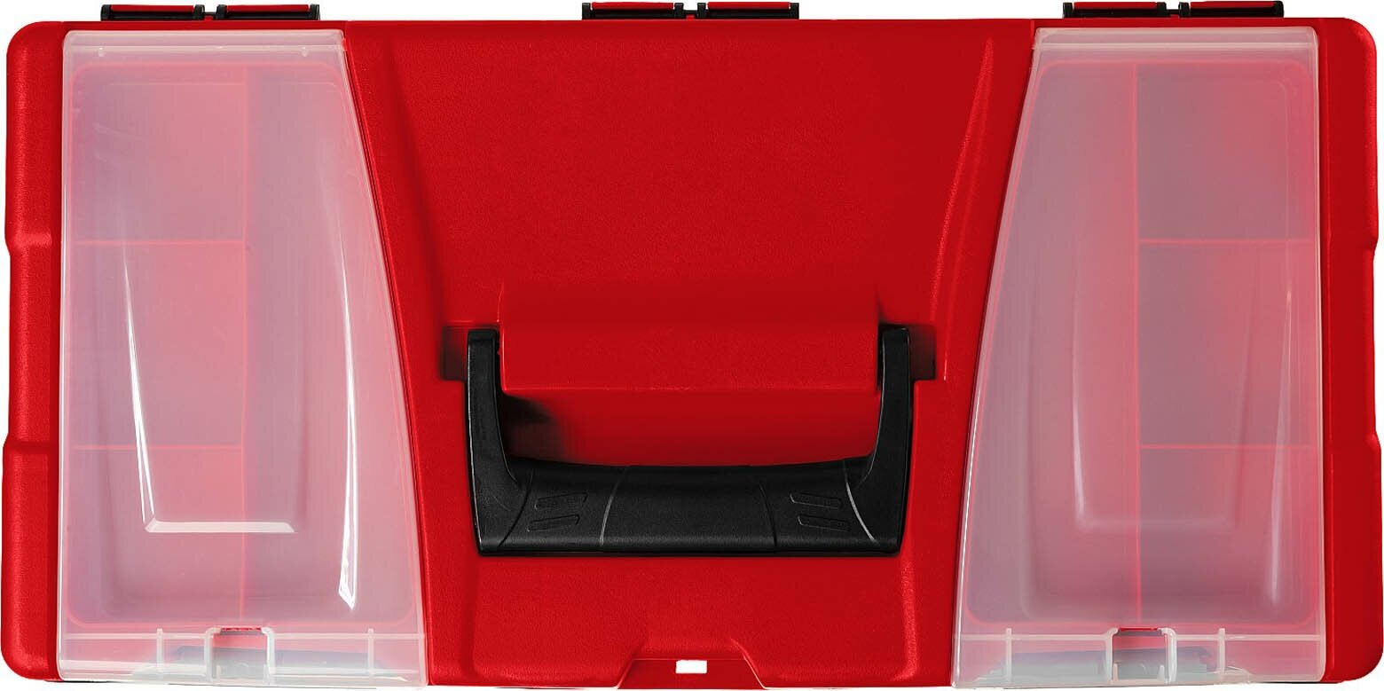 | Прочие особенности и свойства | Вместительный и функциональный ящик НЕВА поможет организовать удобное хранение инструментов и принадлежностей.,,Съемная внутренняя полка для размещения мелких предметов,Встроенные органайзеры для хранения метизов и расходных материалов,Прочный пластиковый корпус,Надежные пластиковые замки |