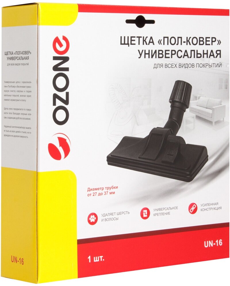 - UN-16 Универсальная щетка для пылесоса "Пол-ковер" Ozone, под трубку 27-37 мм ВИДЕОИНФО