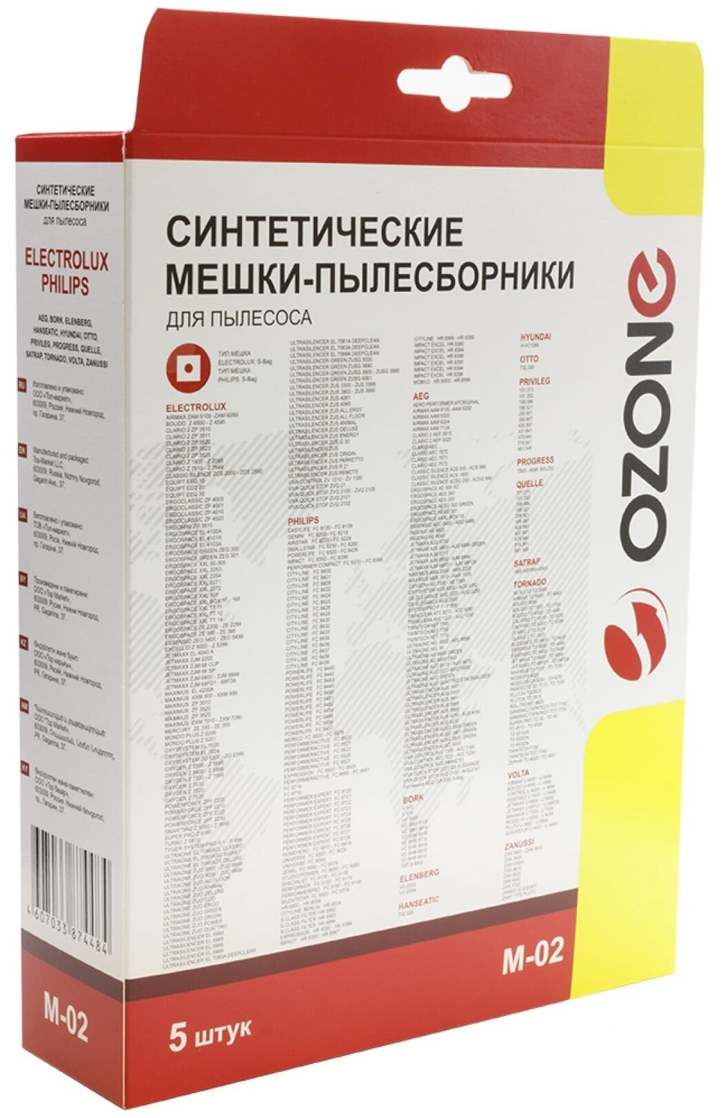 Ozone подходит для пылесосов ELECTROLUX, AEG, PHILIPS, TORNADO, VOLTA, ZANUSSI.