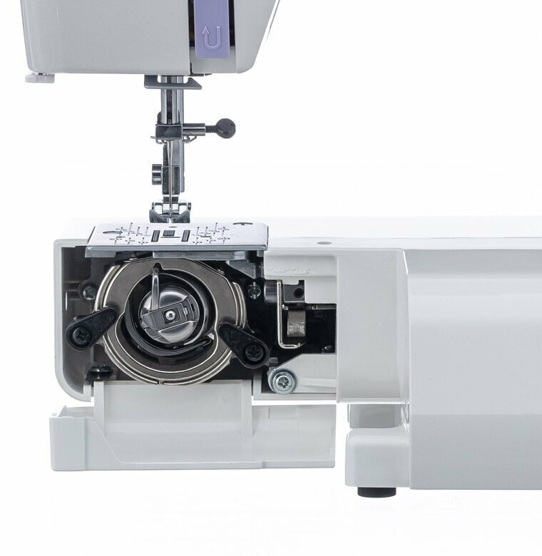 | Комплект поставки | педаль; руководство по эксплуатации; иглы стандартные; шпульки; распарыватель; штопальная пластина; лапка универсальная; лапка для обметывания петель; лапка для вшивания молнии; мягкий чехол |