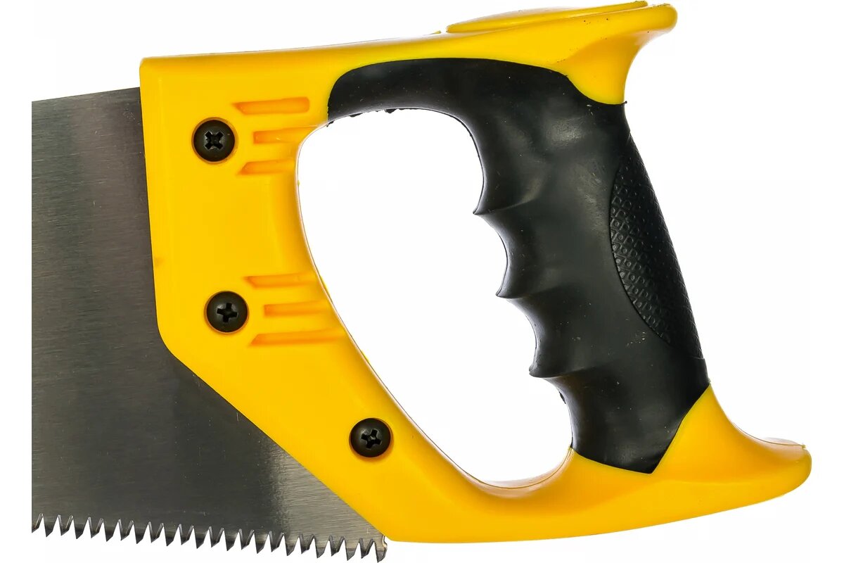 Ножовка по дереву NEO Shark 10A445 у меня давно очень уже. Когда-то подсмотрел её у соседа. Заказывал здесь, поэтому решил поделиться впечатлениями тут. За счет того, что сделана из закаленной стали, то не поддается сильному изгибанию и имеет плотное полотно. Заточка зубьев тут трехсторонняя. Они тоже закалены, так что снижают сопротивление и значительно облегчают распилку, особенно если пилить вдоль волокон. Рукоятка у инструмента удобная, покрыта антискользящим слоем, что очень удобно для ладони, а также безопасно. Захват получается надежным и работать комфортней, а также, не надо напрягаться больше и думать, как бы ручка не выскользнула.
