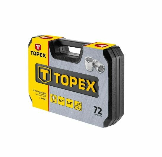 Набор торцевых ключей TOPEX состоит из 72 элементов, упакованных в удобный пластмассовый чемоданчик. Весь инструмент изготовлен из высококачественной хромованадиевой стали, обеспечивающей долгий срок службы инструмента. В набор входят, в частности, широкая гамма сменных головок, популярных сменных наконечников, рукоятка для наконечников, а также две трещотки. Набор предназначен для универсального применения, для мелких монтажных работ, ремонта оборудования и автомобилей, а также прочих работ в быту и в гараже каждого домашнего мастера. Бренд TOPEX предназначен для домашних мастеров.