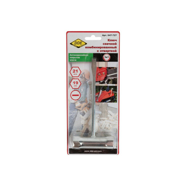 Ключ свечной комбинированный 19х21 мм DDE предназначен для смены свечи зажигания, для затяжки гаек и винтов при натяжении или смене пильной цепи. Используется при работе с бензопилам, бензотриммерами и другими устройствами, где применяются свечи зажигания.. Размер: 19/21 . Вес нетто: 0.16 кг. Габариты без упаковки: 19 х 21 мм.