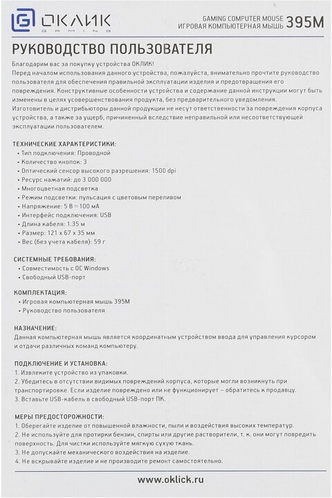 На сегодняшний день товар «Мышь Oklick черный оптическая (1500dpi) USB (2but) 395M» можно купить с кешбеком в 1 магазине: E2e4online
