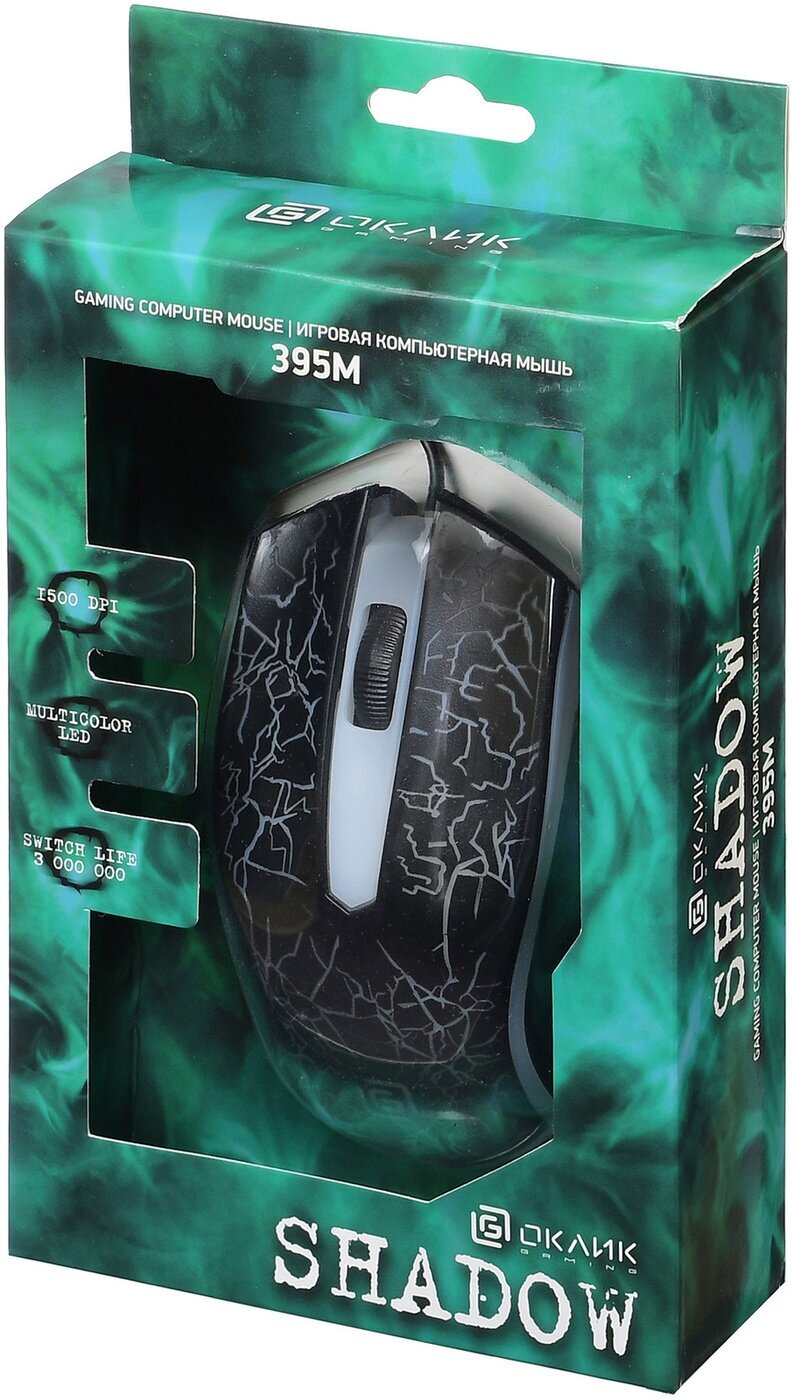 Мышь Oklick черный оптическая (1500dpi) USB (2but) 395M