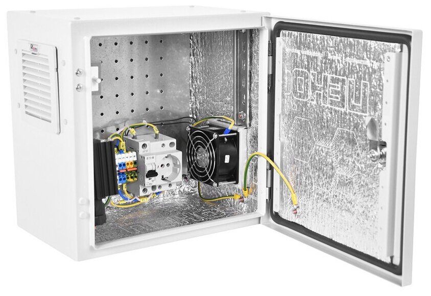 | Комплект поставки | корпус; дверь; заземление; вводной автоматический выключатель; датчик открытия двери; вентилятор; термостат; кабельные вводы |