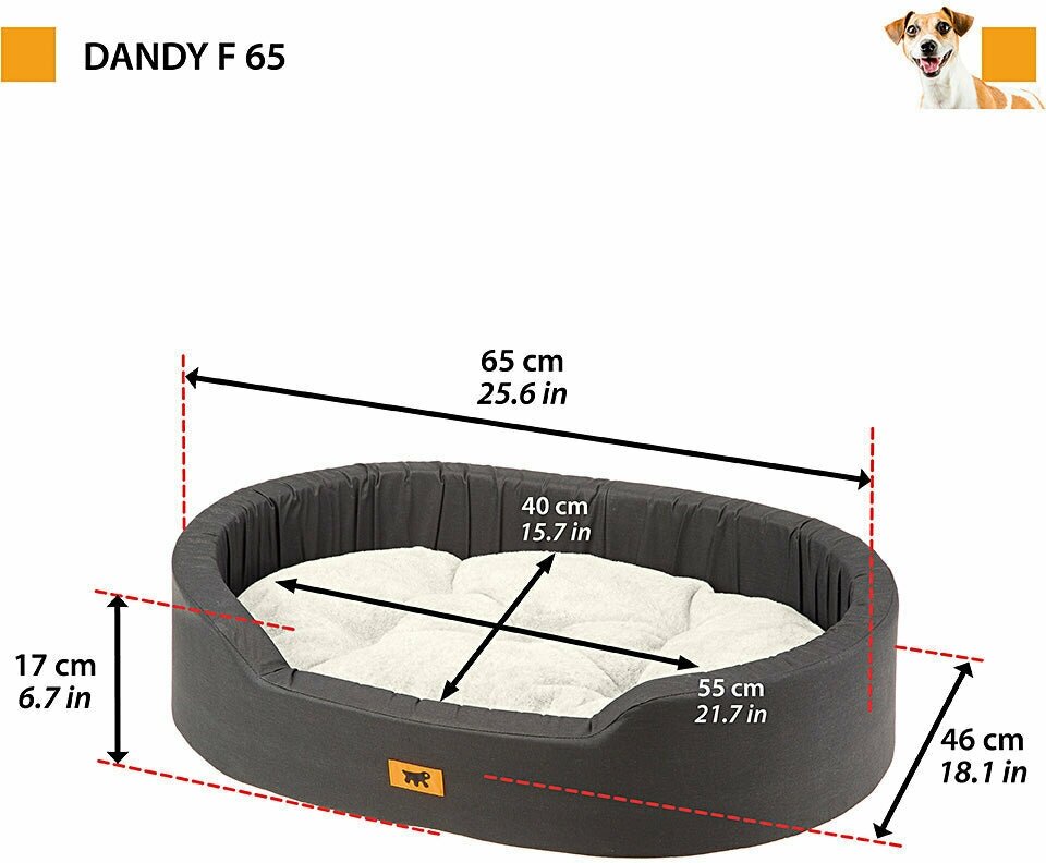 Маленькие и декоративные собачки, как правило, очень чувствительны к холоду, поэтому модель лежака Dandy 65 подходит для них более, чем все остальные. Продуман лежак до мелочей и выполнен в лучших традициях итальянского бренда Ferplast. Дизайн этой линейки как раз и разрабатывался для чувствительных к холоду животных. Он имеет определенную высоту над полом и высокие бортики, защищающие от сквозняка. А также его овальная форма более всего соответствует типичной позе питомцев во время их отдыха. В конструкции лежака предусмотрена съемная подушка, которая обита натуральной тканью, поэтому питомцу будет комфортно. Ткань - яркий 100% хлопок. В качестве наполнителя производитель выбрал полиэстер - современный материал, идеально сохраняющий форму даже после стирки. Он делает бортики лежака теплыми, в результате чего питомец еще больше защищен от холода. Уход за таким лежаком несложный. Съемную подушку вы можете часто стирать в машинке при температуре 30 градусов. Она быстро высыхает, поэтому с ее чисткой никогда не возникает сложностей. Использованные краски для ткани являются нетоксичными и очень устойчивыми, поэтому лежаку не страшны частые стирки.