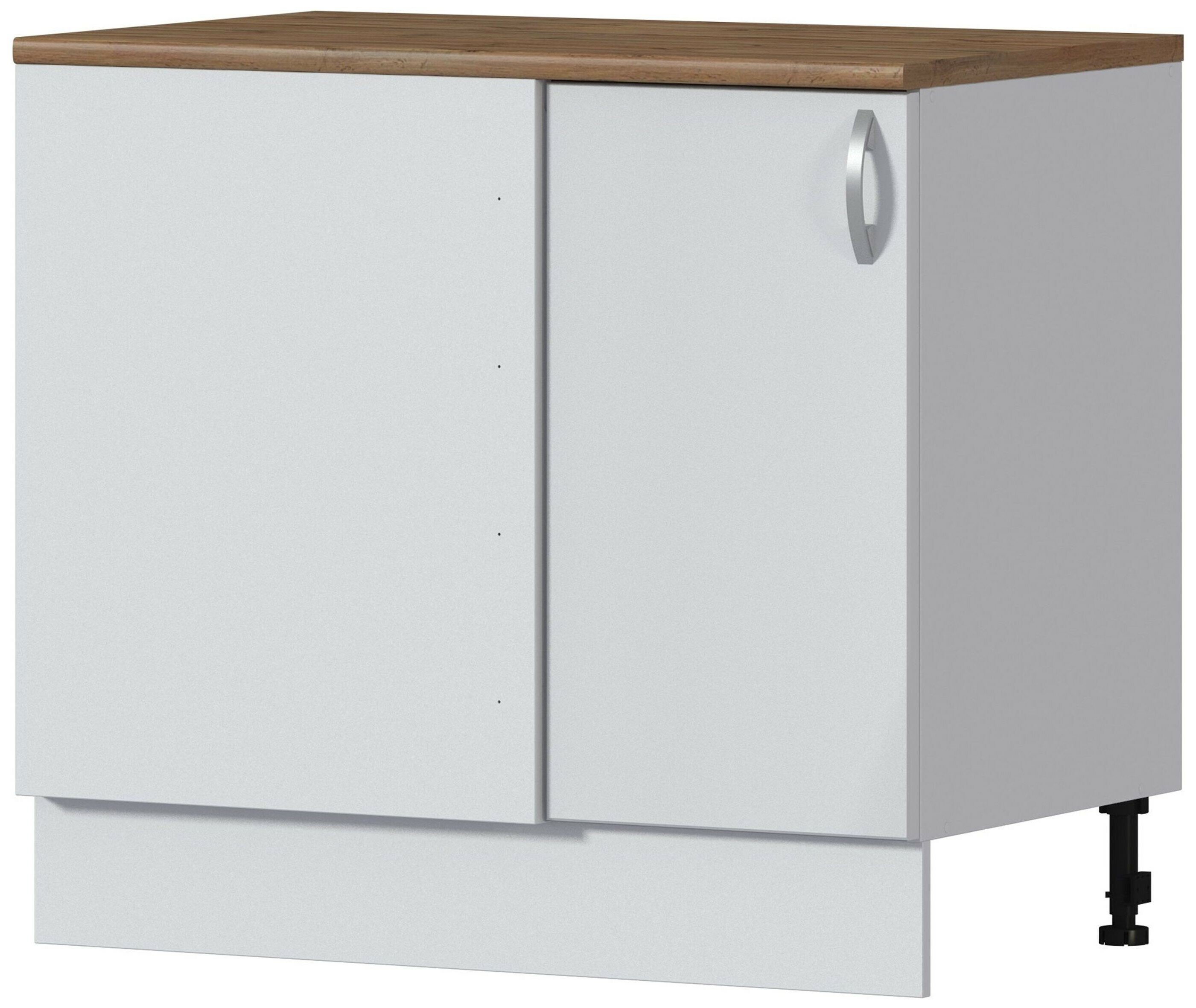 Шкаф напольный Дублин шириной 80 см идеален для хранения крупной кухонной техники, посуды, продуктов. Две дверцы обеспечивают полный обзор и удобный доступ к содержимому.