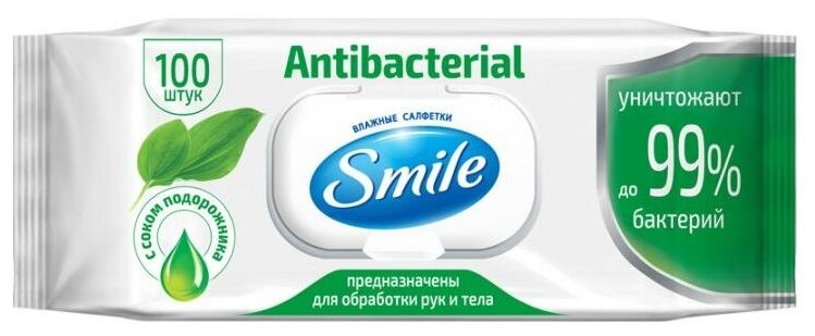 Влажные салфетки Smile антибактериальные с подорожником 60 шт (221769)