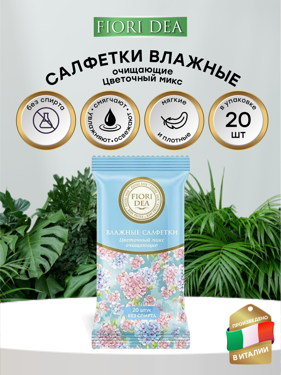 Влажные салфетки Fiori Dea очищающие с ароматом Цветочный микс 20 шт (222766)
