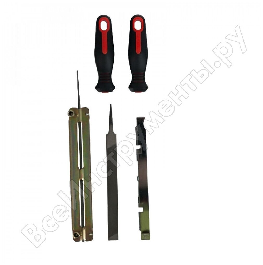 | Состав набора | Плоский напильник, круглый напильник + 2 ручки, державка с линиями, шаблон |