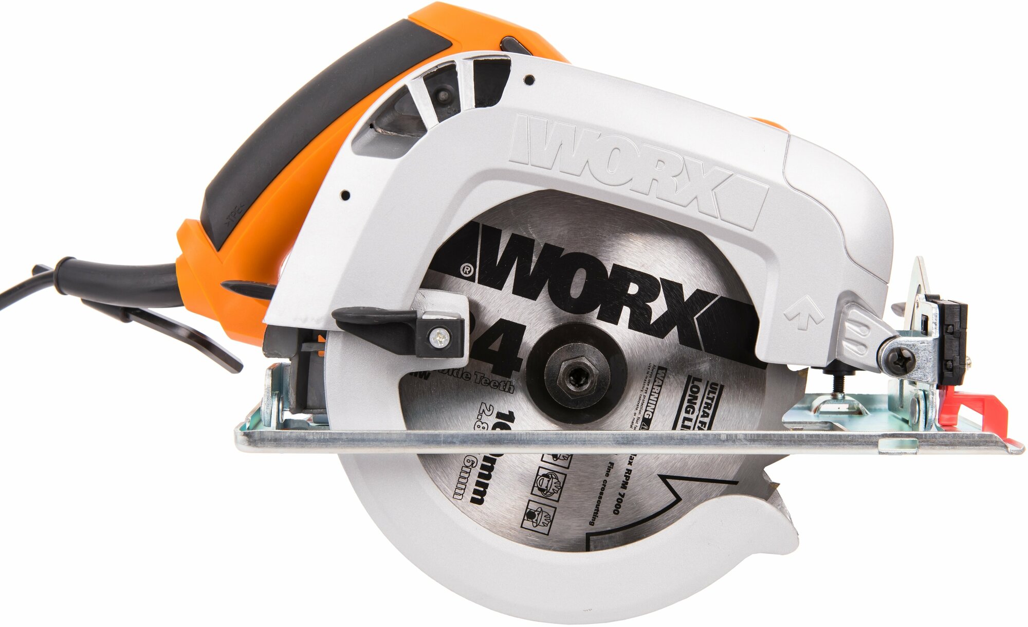 Сетевая циркулярная пила WORX 220V 1200Вт обладает мощностью, сравнимой с более дорогостоящими аналогами, значительно опережая в показателях. За счет эргономичного дизайна и прорезиненной ручки инструмент удобно лежит в руке, что позволяет работать с ним длительное время. В этой пиле присутствует регулировка угла наклона режущего полотна — от 0 до 45o, а также регулировка глубины реза: при угле реза 90o глубина — 55 мм, при угле 45o глубина — 38 мм. Скорость вращения пильного диска без нагрузки доходит до 5000 об/мин, что позволяет пилить многие материалы. Встроенное устройство для подключения пылесоса поможет собрать весь строительный мусор прямо во время работы. Вес модели — 3,5 кг. Также дополнительным преимуществом стоит отметить систему наружной замены щеток и блокировку переключателя во избежание случайного запуска.