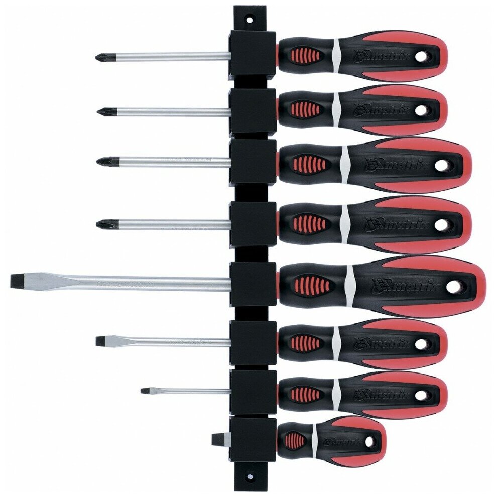 Набор Matrix «Era» включает в себя 8 отверток из стали CrV, с 3-компонентными рукоятками. Используется для закручивания и откручивания резьбового крепежа со шлицами PH и SL. Направлять отвертку с насаженным крепежом можно одной рукой, т.к. рабочая часть каждого инструмента намагничена. Набор рекомендован для профессионального применения и будет полезен во время ремонта оборудования и бытовой техники, а также при сборке мебели.