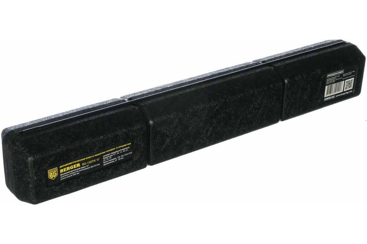 Динамометрический ключ с набором головок Berger BG 1/2" 28-210 Нм применяется при необходимости затяжки резьбовых соединений с выставленным крутящим моментом. Ключ поставляется в удобном кейсе. Инструмент выполнен из прочной стали и имеет в комплекте головки, биты и удлинитель.