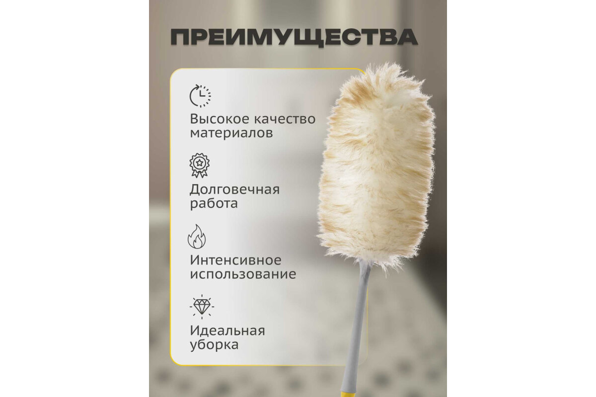 Метелка из настоящей шерсти ламы. Она привлекает и, естественно, сохраняет пыль от каждого объекта, даже самого деликатного. Длинная эргономичная ручка и приспособление, подходящие для рукоятки метлы для достижения предметов, расположенных выше - - подходит любая трость Apex: FR11509, FR11511, FR11512, FR11519, FR11520. Для уборке можно будет работать в полной безопасности без использования лестницы. . При загрязнении, рекомендуется промыть вручную в мыльной и проточной воде не более 40* . Сушить можно только естественным способом. Размер: 20 x 20 x 55 см.