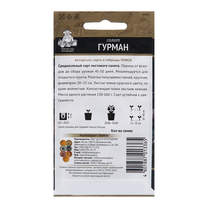 Раннеспелый сорт листового салата для открытого грунта. Период от всходов до сбора урожая 45-50 дней. Розетка крупная, диаметром 20-25 см. Листья темно-красного цвета, по краю сильно волнистые. Сорт устойчив к цветушности. Ценность сорта: выравненность растений и отличный вкус.