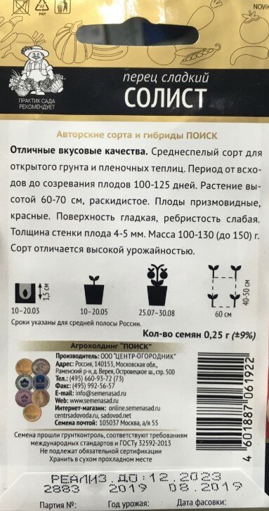 Сорт сладкого перца Солист подойдет для высадки на открытый грунт или в закрытых теплицах.