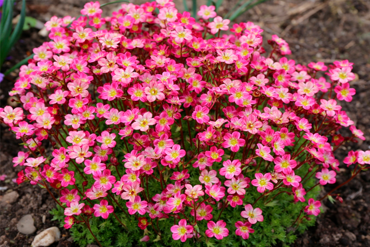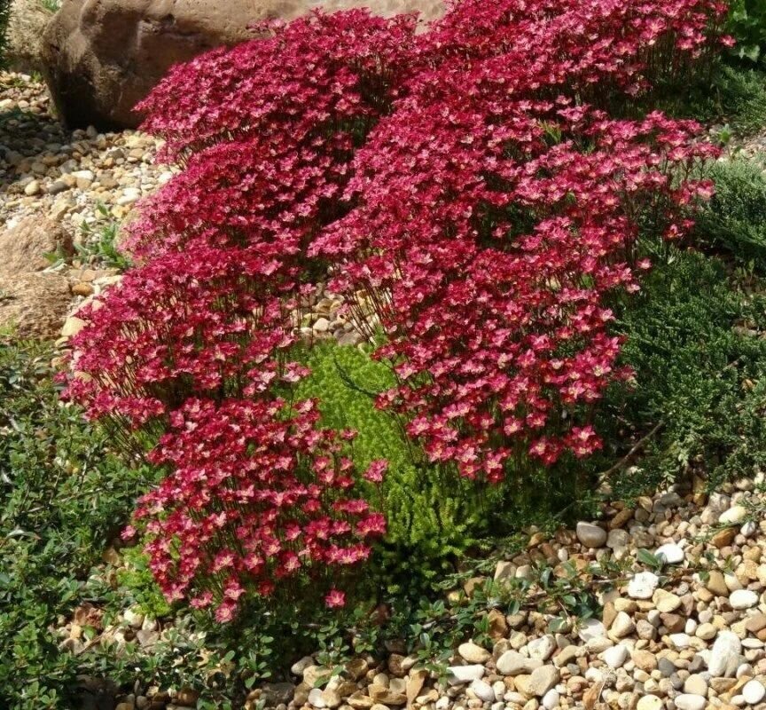 Камнеломка Арендса Пурпурный ковер - многолетнее вечнозеленое растение, которое, как и следует из названия, создаст в цветнике роскошный ковер пурпурно-розового цвета. Мелкие цветки очень плотно прилегают друг к другу, закрывая зелень. Высота растения - около 20 см. Цветок просто незаменим для создания основы на каменистых альпийских горках. Цветение начинается на второй год роста в мае - июне и продолжается около 30 дней.