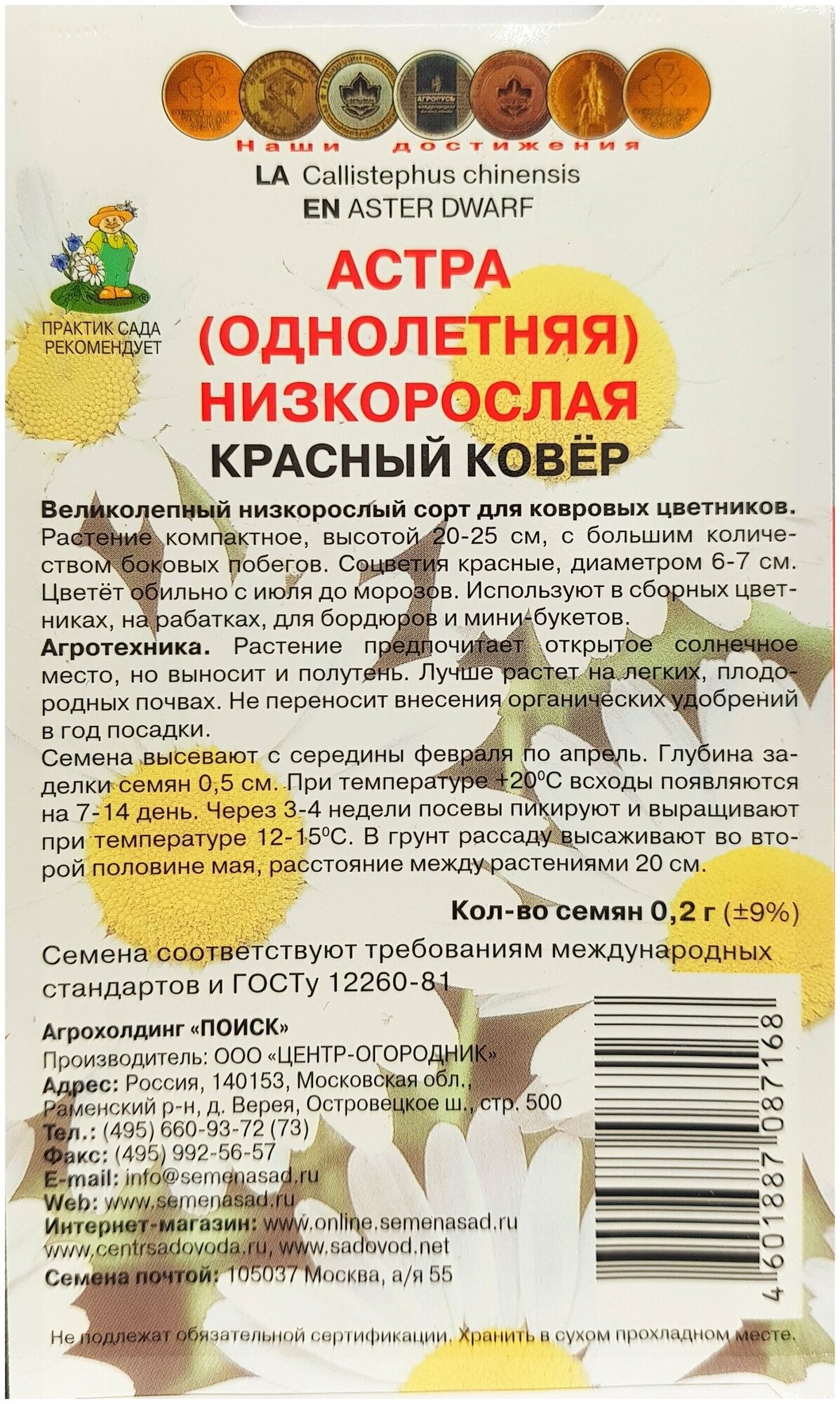 Погрузитесь в яркий мир садоводства с семенами астр "Красный ковер" от бренда "Поиск". Эти низкорослые цветы станут настоящим украшением любого сада, создавая эффектный ковер из красных оттенков. Семена упакованы в цветную упаковку, что делает их идеальным выбором для подарка или собственного использования.