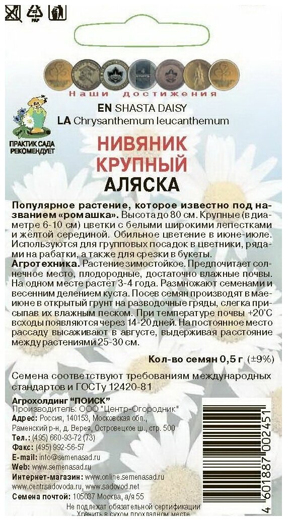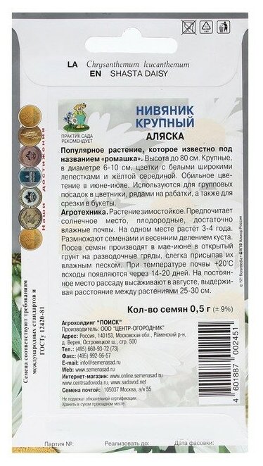 Сервис сравнения цен СкидкаГИД предлагает сравнить цены на товар «Нивяник крупный Аляска Поиск 05 гр»