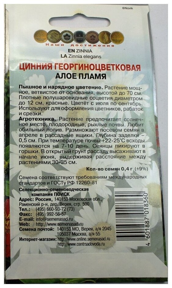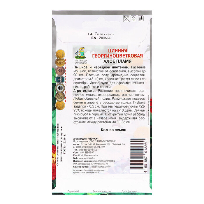 Сервис сравнения цен СкидкаГИД предлагает сравнить цены на товар «Цинния георгиноцветковая Алое пламя Поиск 04 гр»