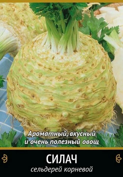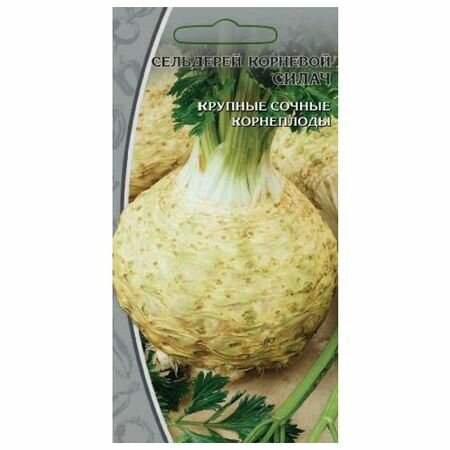 Сельдерей корневой Силач имеет листовую пластину насыщенного зеленого цвета и светло-зеленые черешки, на поверхности корнеплод окрашен в желтоватый цвет. Мякоть цвета слоновой кости. С момента появления первых всходов и до получения урожая проходит в среднем 140-150 дней. Характеризуется хорошей урожайностью 3 кг с квадратного метра, ароматом и отменным вкусом.