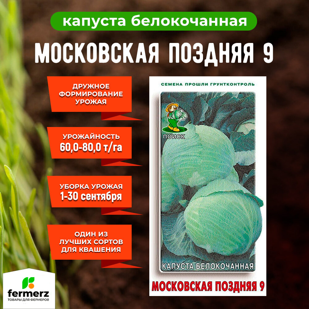 Позднеспелый сорт белокочанной капусты Московская созревает спустя 110-115 дней после всходов. Округлые плотные кочаны массой от 3,5 до 7 кг имеют прекрасные вкусовые качества. Сорт любит плодородную почву, изобилие влаги и высаживается в прогретый грунт. Урожайность достигает отметки 600-990ц/га, а выход товарной продукции - 90-97%.