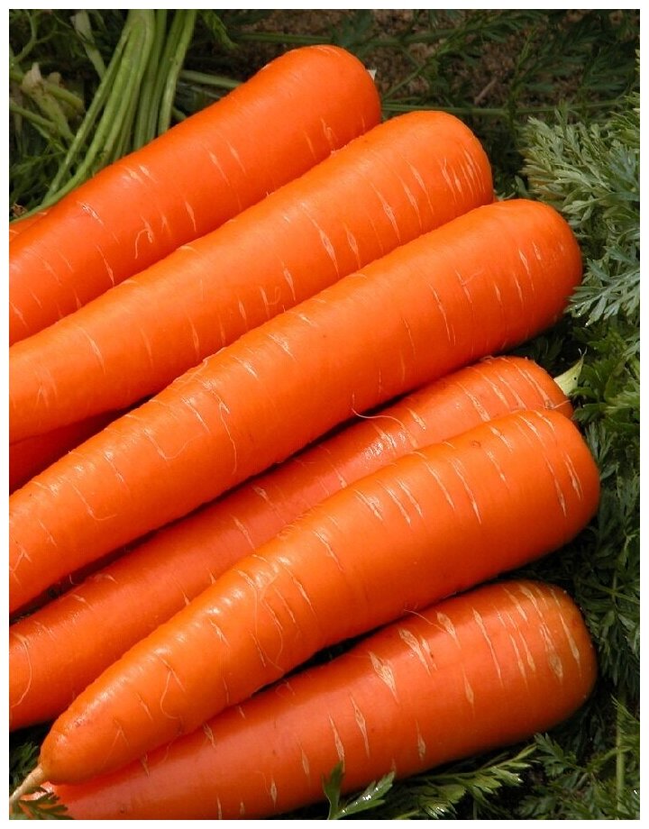 Среднеспелый сорт моркови Нантская 4 обладает отменным вкусом, созревает в течение 78-108 дней после всходов. Тупоконечные цилиндрические корнеплоды длиной до 15 см и массой до 160 г имеют небольшую округлую сердцевину. Сорт дает хороший урожай в пределах 2,5-6,6 кг с одного квадратного метра.