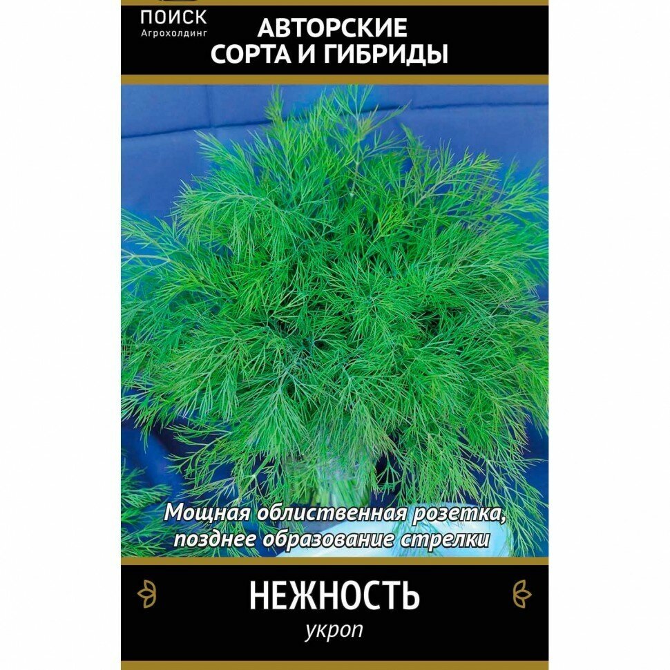 Укроп Нежность” - это высокоурожайный среднепоздний сорт. Период от полных всходов до хозяйственной годности 45-55 дней, до цветения 65-80 дней. Взрослое растение достигает высоты 90-110 см. Листья крупные, нежные, с повышенной ароматичностью, окраска темно-зеленая.