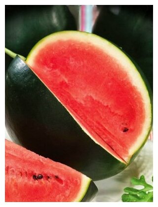 Плоды круглой формы, темно-зеленого окраса без рисунка. Масса зрелого арбуза - 2-3 кг. Кожа тонкая, мякоть сочная и очень сладкая, ярко-красного цвета. Плоды не очень транспортабельны, поэтому не подходят для промышленного выращивания. Высадка семян производится в конце апреля по схеме 60х100. Не требуется особого ухода. Полив минимальный. Требуется только рыхление и удаление сорняков.