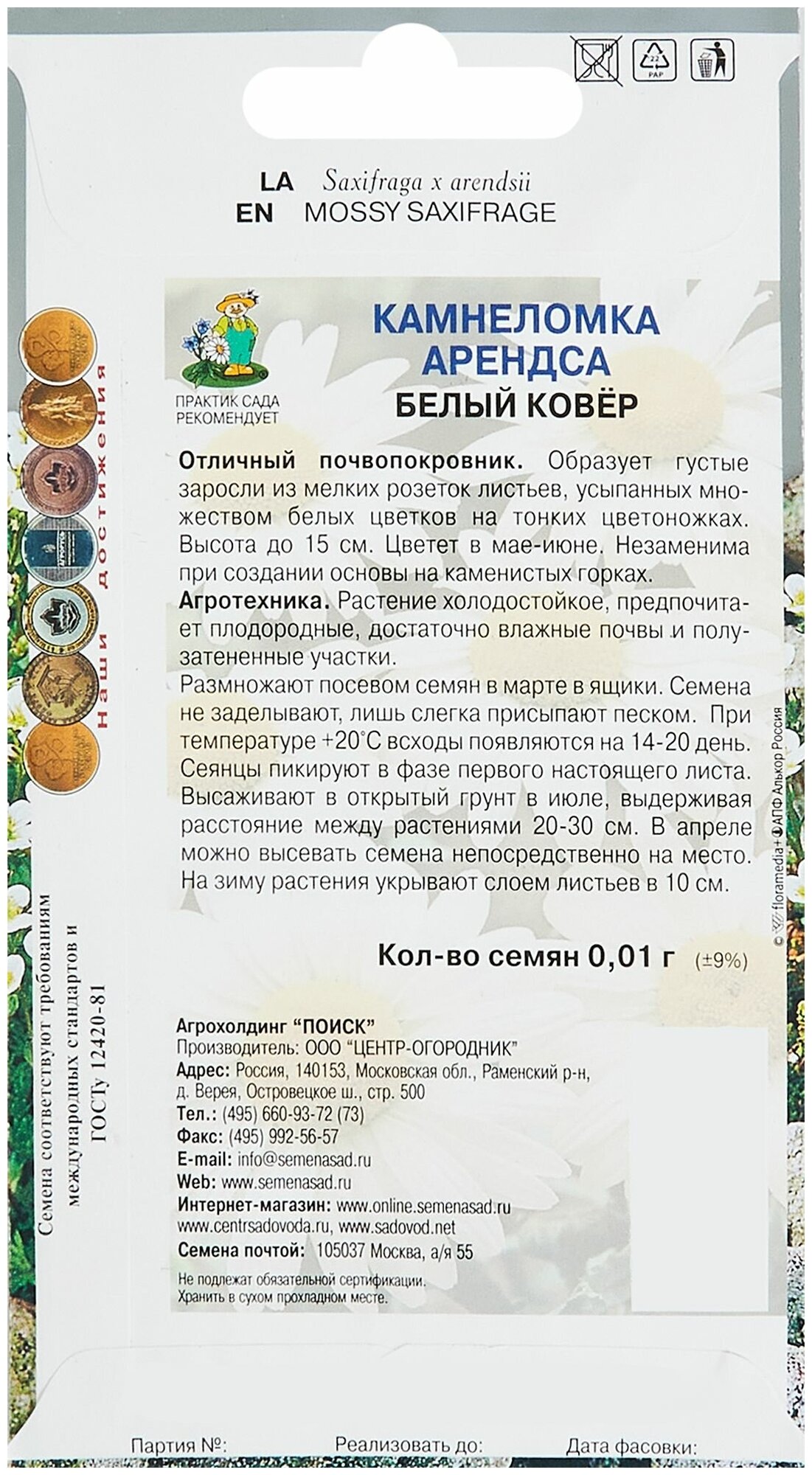 Сервис сравнения цен СкидкаГИД предлагает сравнить цены на товар «Камнеломка Арендса Белый ковер Поиск 01 гр»