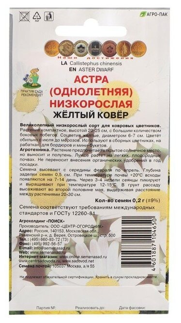 Астра низкорослая Жёлтый ковёр Поиск 02 гр