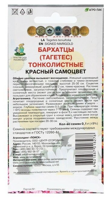 Сервис сравнения цен СкидкаГИД предлагает сравнить цены на товар «Бархатцы тонколистные Красный самоцвет ПОИСК»