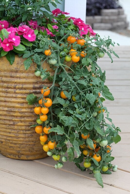 Томат для выращивания в кашпо и балконных ящиках. Раннеспелый, период от всходов до созревания 80-85 дней. Длина побегов до 1 м. Плоды округлые, оранжевые, массой 20-25 г., великолепного вкуса, используются для употребления в свежем и цельноплодного консервирования. Посев в конце февраля, в горшочки пересаживают в конце апреля. Плодоношение с июля месяца.