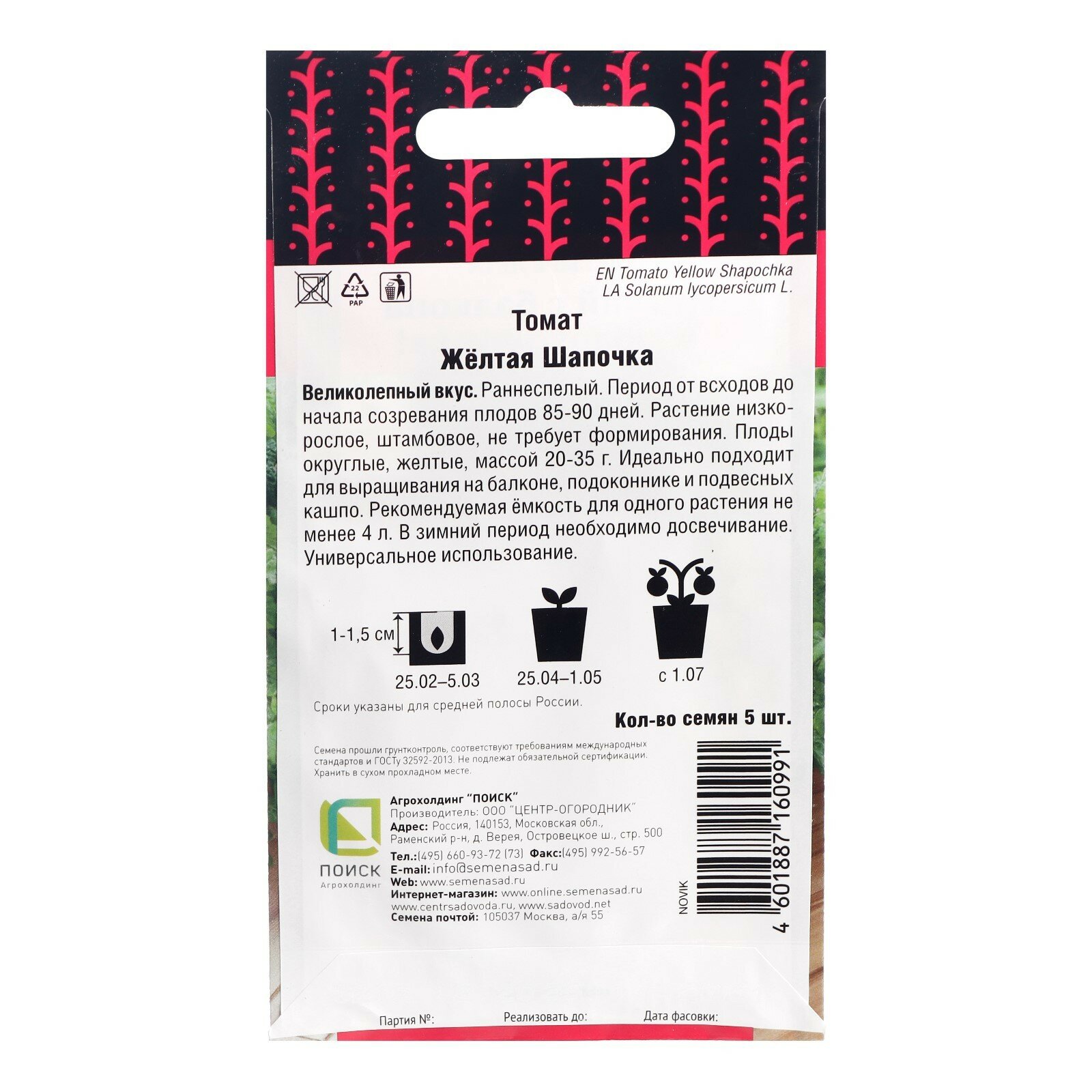 Сервис сравнения цен СкидкаГИД предлагает сравнить цены на товар «Томат Желтая Шапочка ПОИСК , плод 15-20 гр»