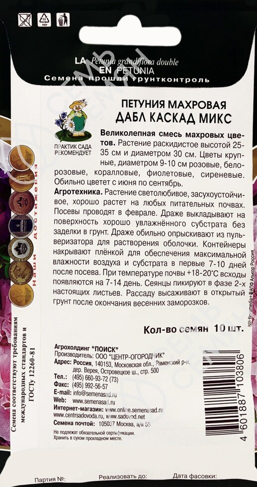 Петуния махровая Дабл каскад микс 🌿 обзор: как сажать, семена петунии Дабл каскад микс