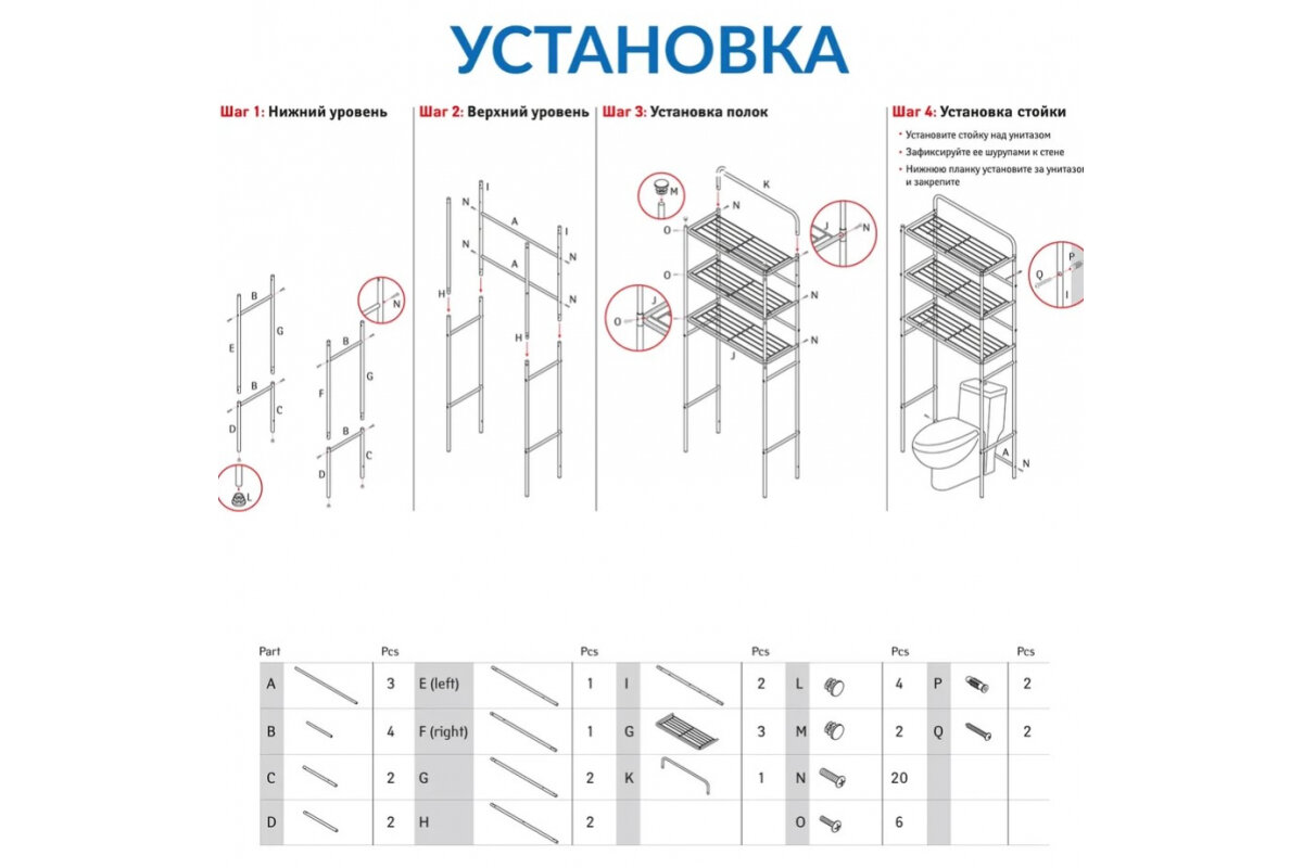 Главное достоинство этой полки – ее функциональность. С тремя открытыми полками на разных уровнях, она предоставляет достаточно места для размещения всех необходимых туалетных принадлежностей. Благодаря своей прямоугольной форме и стационарной установке, она занимает минимальное пространство в вашем туалете.