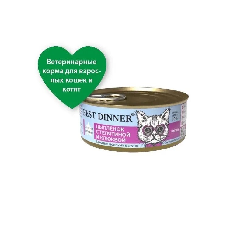 Влажный корм Best Dinner для взрослых кошек Цыпленок с телятиной и клюквой 100 г Exclusive Vet Profi Urinary