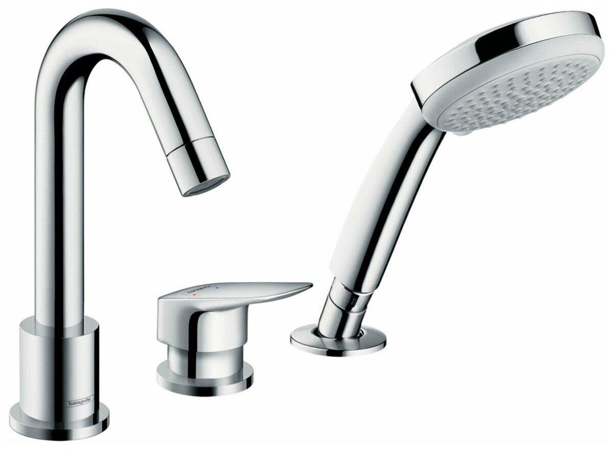 Смеситель для ванны Hansgrohe 000 устанавливается на бортик или на плитку под одно отверстие. Излив выполнен из трубки круглого сечения высотой 25 см. Ручная лейка имеет классическую форму, защищена от известковых накоплений. Регулировка воды производится с помощью одной ручки. Смеситель удобный в пользовании, качественный, практичный.
