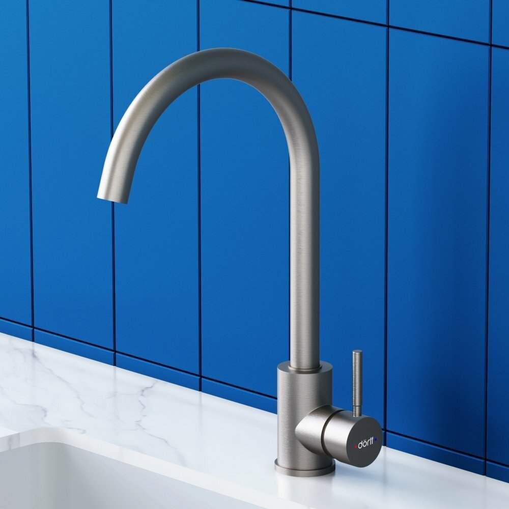 Смеситель для кухни DORFF LOGIC D3000000 изготовлен из нержавеющей стали, имеет удобную конструкцию с эргономичной ручкой и высоким поворотным изливом. Модель является образцом современного европейского минимализма и немецких стандартов качества.
