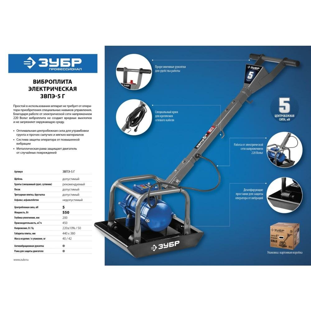 Электрическая виброплита Зубр имеет следующие преимущества: