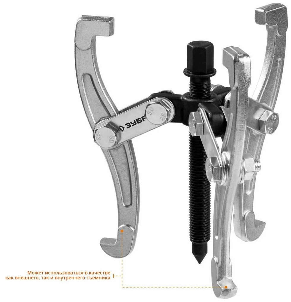 Захваты съемника выкованы из качественной инструментальной стали, что обеспечивает долгий срок службы при работе с высокими нагрузками. Позволяет работать с широким рядом узлов.