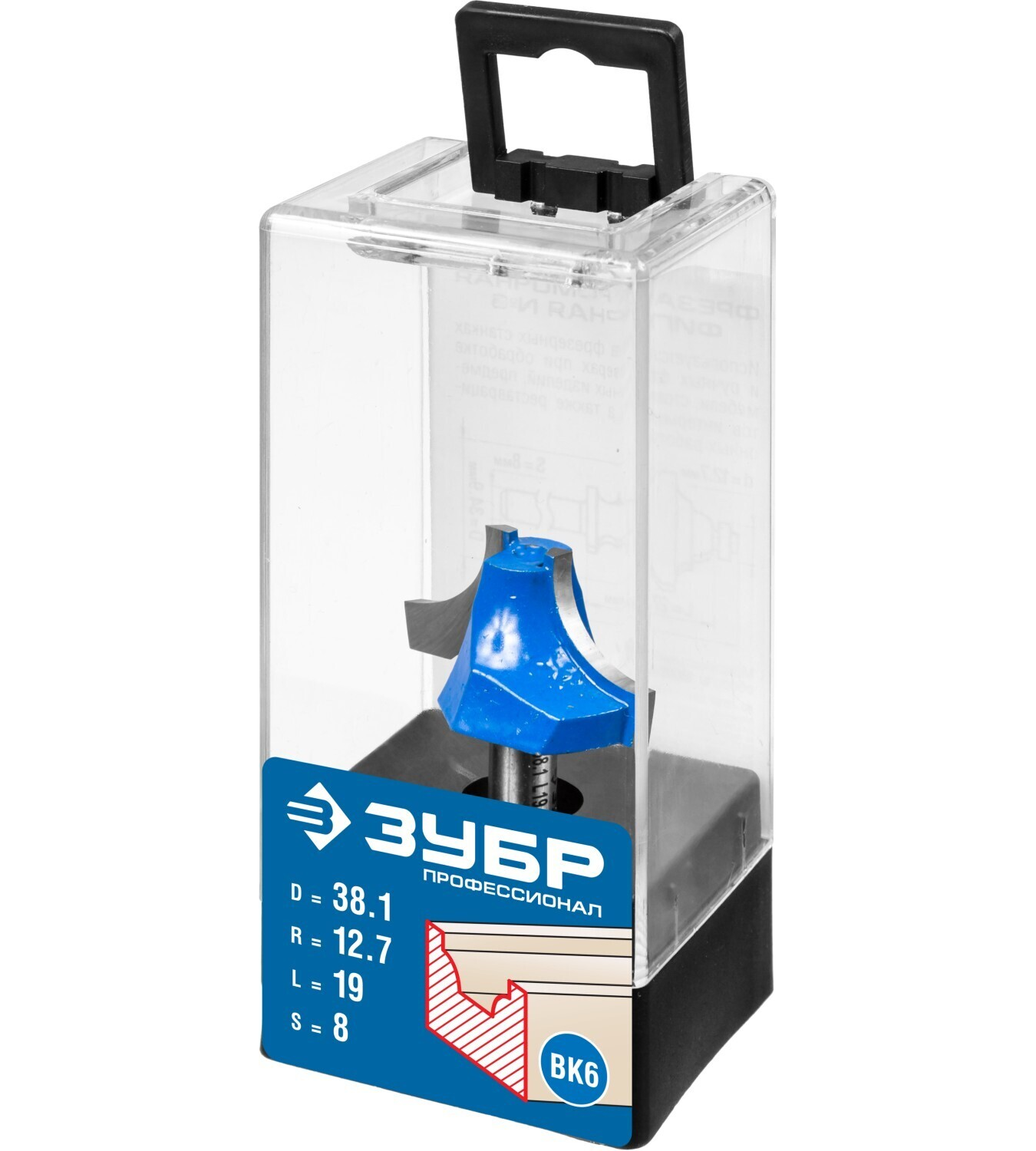Фреза пазовая фасонная №1, D= 38,1мм, рабочая длина-19мм, радиус-12,7мм, хв.-8 мм, ЗУБР Профессионал