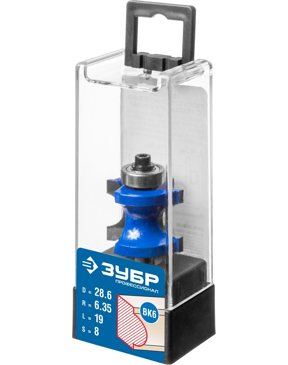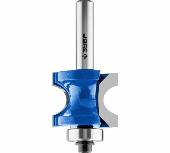Фреза полустержневая с подшипником, D= 28,6мм, рабочая длина-16мм, радиус-6,35мм, хв.-8мм, d-12,7мм, ЗУБР Профессионал