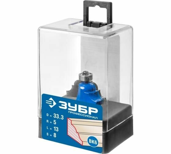 Фреза кромочная калевочная №4, D= 33,3мм, рабочая длина-13мм, радиус-5мм, хв.-8мм, d-12,7мм, ЗУБР Профессионал